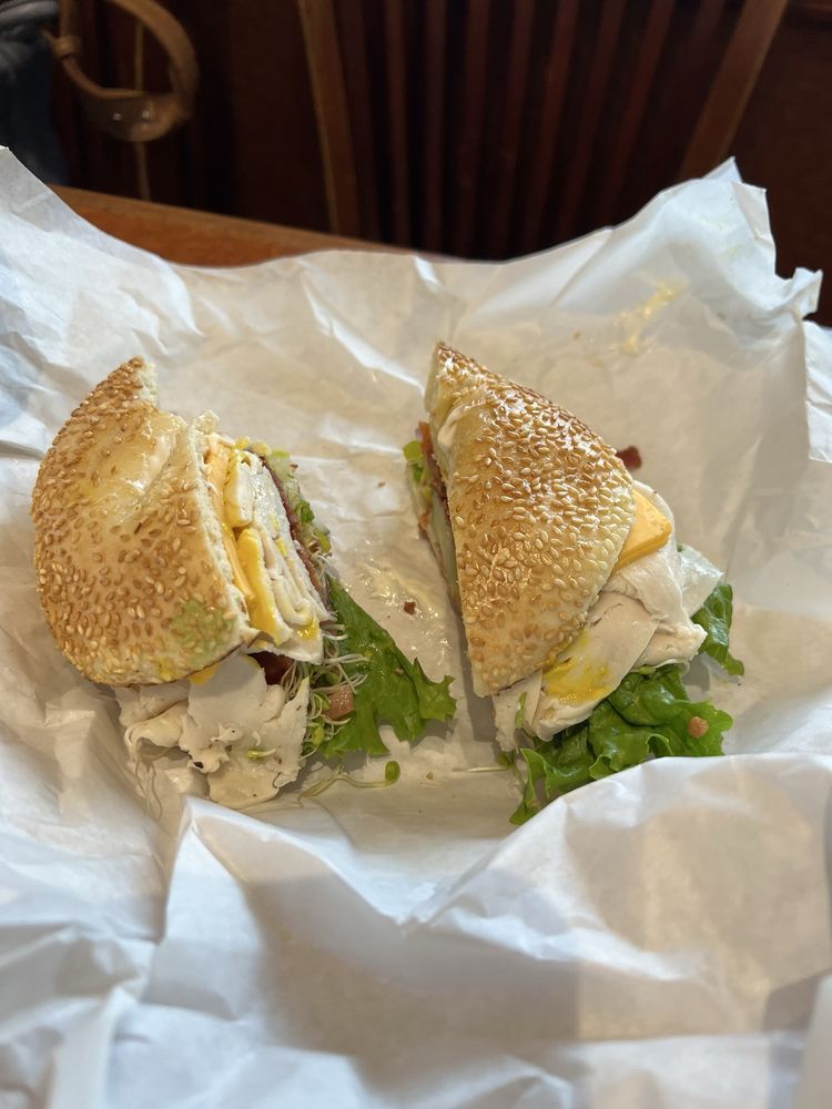 Bagel served with Egg, Avocado, your Choice of Meat and Cheese